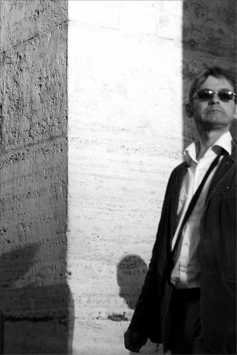 Devo essere sincero, il mio intento iniziale era molto molto più semplicistico, ho visto passare questo signore che guardava verso di me e quello che è dietro di lui avanti alla colonna precedente e avevo notato come poteva essere interessante la sovrapposizione tra la figura umana in PP e l'ombra stampata sulla colonne dell'altro signore... poi una volta scattato mi sono ritrovato anche con l'altra ombra che stava per scomparire e non mi è dispiaciuto affatto.