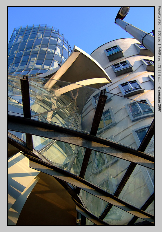 Costruita tra il 1992 e il 1995, la "casa danzante" così detta per la sinuosità delle sue ondulazioni, è sede degli Uffici Nazionali Olandesi ed è diventata uno dei simboli della nuova Praga.