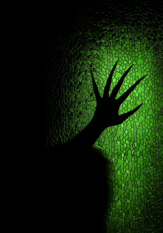 Dal buio, spesso prendono forma le paure e i terrori più ancestrali, dal buio vediamo spuntare mostri e creature spaventose.. dal buio dietro ad una porta, la poca luce verde, crea una sinistra atmosfera da cui un essere spaventoso forse viene a catturarci.. Immagine che ricalca le paure legate al buio, quelle più fanciullesche che ci accomunano..