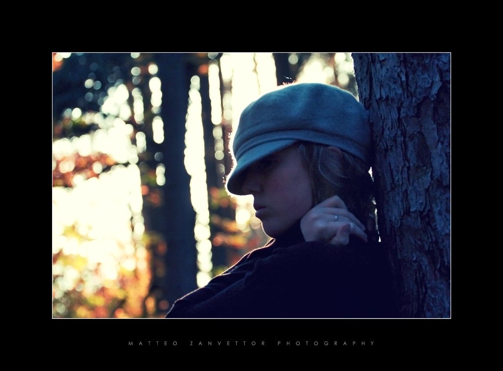 ..vorrei sapere se potevi gestire meglio, cioè rendere meno incidente, il profilo di luce sul cappello, magari posizionandoti più a destra, sempre con questa stessa composizione ma facendo corrispondere il profilo del cappello sugli alberi i sfocati in secondo piano..