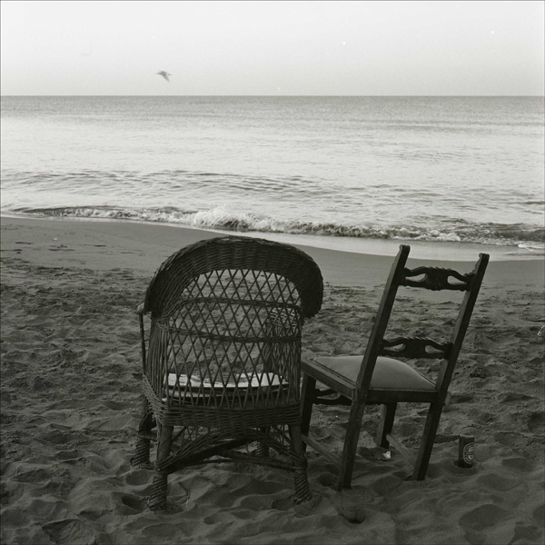 Il gabbiano in lontananza da la linea di riferimento sulla quale, le due persone sedute sulle sedie precedentemente, puntavano il loro sguardo.