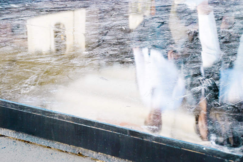 Vi spiego come è nato lo scatto (che poi è il modo con il quale nasce la maggior parte dei miei scatti): mentre stavo passeggiando per Venezia la mia attenzione è stata attirata da questa pedana semi-riflettente piena di polvere, la cosa mi ha colpito ed ho voluto fotografarla.