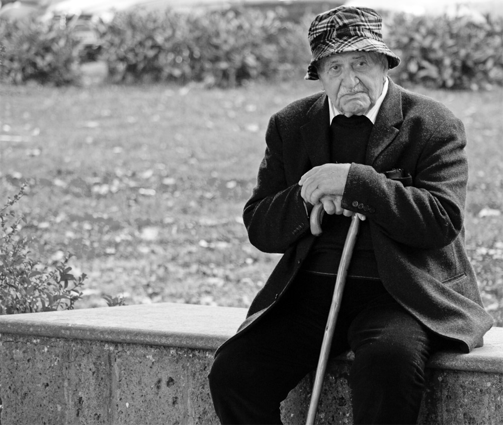Perchè, sia per la espressione del volto che per il titolo conseguente, la intenzione da trasmettere è quella di comunicare un senso di malinconia e di isolamento per l'anziano ritratto.