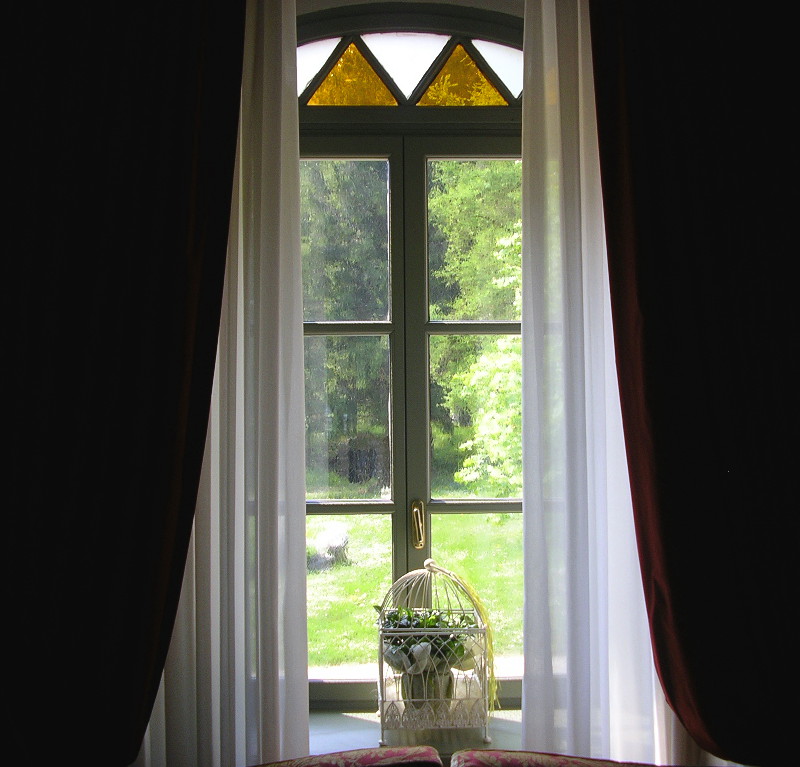 La foto di questa finestra ci fa vivere una dimensione un po' aristocratica dello spazio e del luogo. La luce che entra all'interno è di una bella giornata di sole dove in silenzio si consuma la quiete del soggiornare.