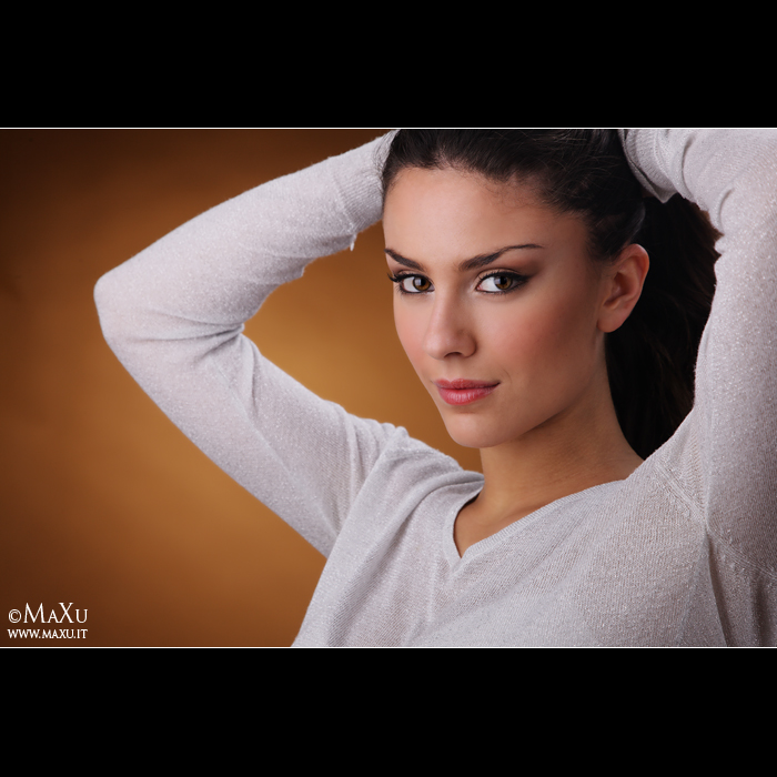 Bello lo sfondo arancione con l'effetto di luce che fa quasi da alone alla bellissima Ludovica (che un giorno vorrei tanto poter fotografare pure io)