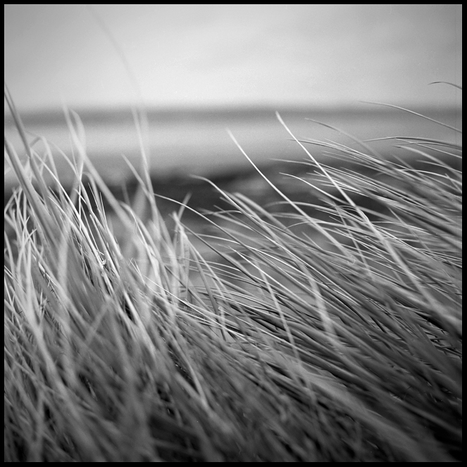 l'orizzonte storto sembra accrescere la forza del vento sull'erba.