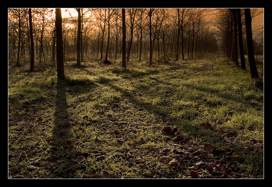 Oltre all'atmosfera peraltro molto bella, questa immagine mi piace in quanto crea a destra la via di fuga costituita dalle fila di alberi; a sinistra invece si consensa la luce proiettando le due lunghe ombre degli alberi, compositivamente è molto articolata, davvero bravo  _________________