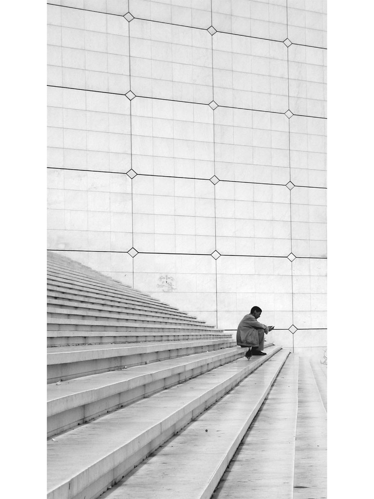 composizione perfetta! la verticalità enfatizza la grandezza della struttura architettonica ed il senso di solitudine della persona. Ok! Smile