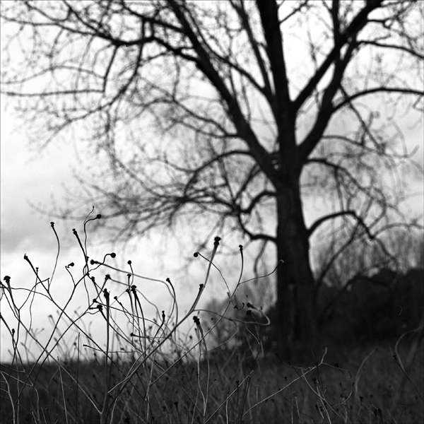 questa me la immagino stampata con il nero-nero solo sugli steli in primo piano e un nero un pelo più su sull'albero.