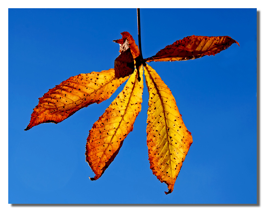 tutta concentrata in maniera pulita ad evidenziare la trasparenza e il colore di queste foglie di castagno.
