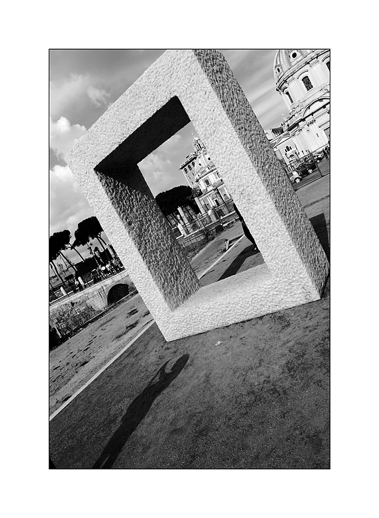 è da qualche minuto che guardo la tua immagine, e non riesco a capire cosa sia che non mi convince al 100%.. forse l'ombra della persona in primo piano suggerisce qualcosa che c'è ma che non è visibile se non con la sua proiezione visiva.. mentre quello spicchio di persona che invece si intravede nella zona dietro alla struttura quadrata mi fa cadere questa sensazione..