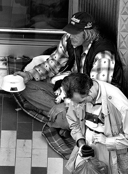 Due cose non mi convincono sino in fondo .. il punto di ripresa troppo distante e dall'alto che in questo genere di foto non aiutano mai ad immedesimarsi con il soggetto .. e il momento che è buono in senso relativo (il gesto dell'estrarre la moneta c'è) ma non in senso assoluto (se stava per dargliela potevi aspettare ancora un po').