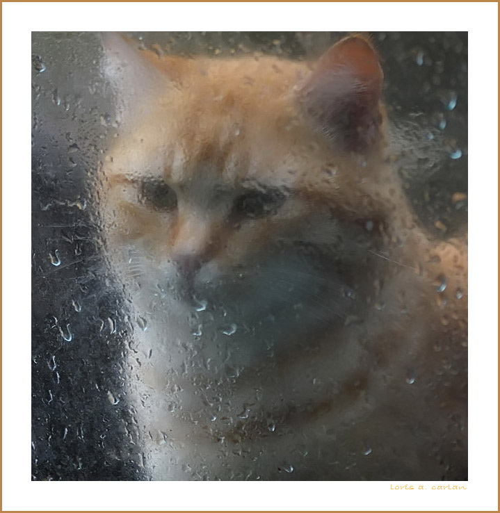 Comunque l'effetto vetro bagnato su questo bel gatto ci sta' propio bene