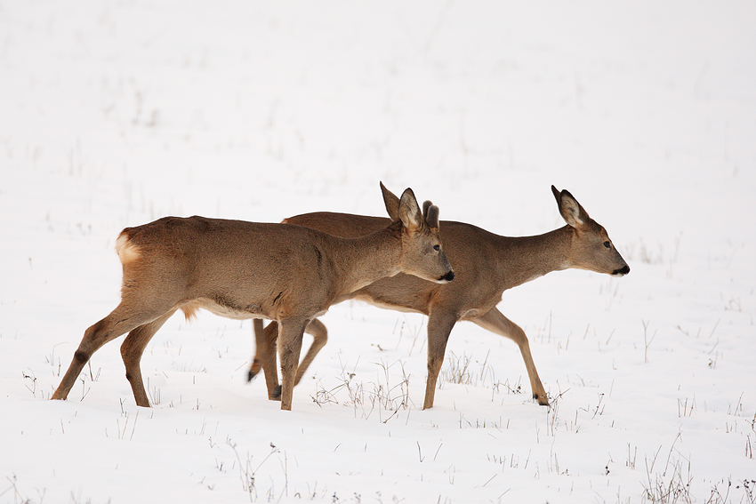 Un'ottimo scatto... però avrei tenuto un po' più scuri i caprioli per guadagnare leggibilità sulla neve. Premetto che siamo alla pignoleria e non vorrei che questo mio modo di vedere sia dovuto soltanto ad una leggerissima differenza di taratura sulla luminosità dei nostri monitor.