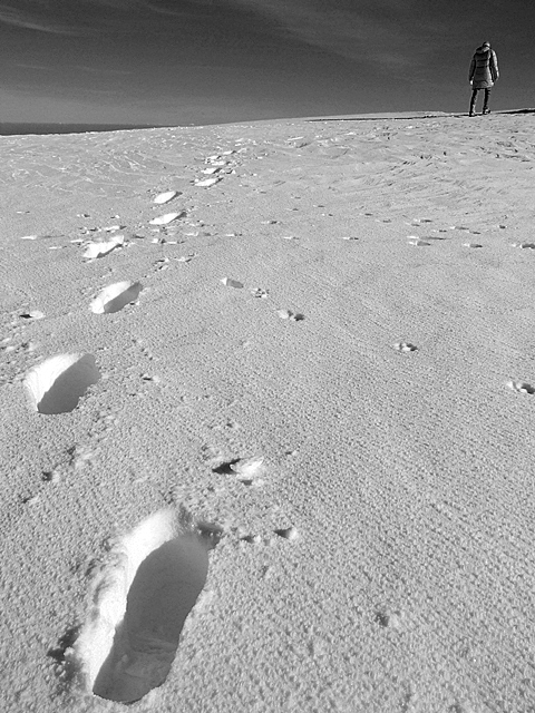 che bella composizione .ha un bel impatto emotivo.Le orme il cammino ,le altre orme...un orrizzonte appena accennato.bella