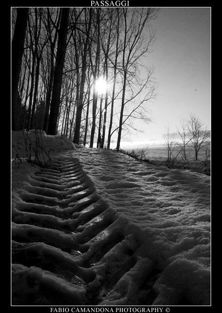 Bel controluce marcato dai segni del grosso pneumatico, mi piace.