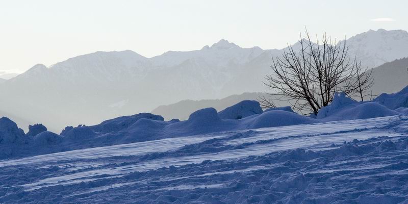Dominante o no e' un'immagine che non mi convince, vuoi per la neve in primo piano che disturba il percorso dell'occhio verso lo sfondo, vuoi per lo sbilanciamento compositivo verso sx (ok, declivio) dove non ci sono elementi forti (o centri di interesse). IMO Ciao