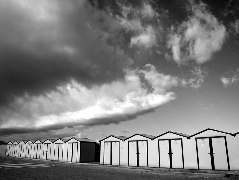 Buona la ricerca di elementi utili a costituire in seno al fotogramma una buona ritmicità in bianco e nero, ma in tal senso ritengo poco utile la marcata distorsione indotta dalla focale utilizzata.