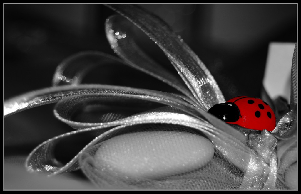il titolo che ho dato è a mio avviso funzionale al contenuto che io vedo nella foto. Il mio primo esperimento di desaturazione parziale è stato guarda caso con una foto dove ho voluto mettere in evidenza la coccinella, chiaro simbolo di portafortuna.... come fosse una foto beneaugurante! chiaro è che il resto della foto rimane solo da sfondo nel momento in cui io decido di mettere in evidenza il fulcro dell'immagine (la coccinella) ed il suo significato (il portafortuna).