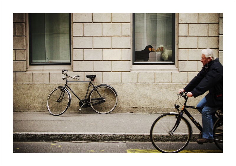 ciao, a me col ciclista non dispiace, mette maggiormente in risalto l'aria surreale data dalle due pecorelle