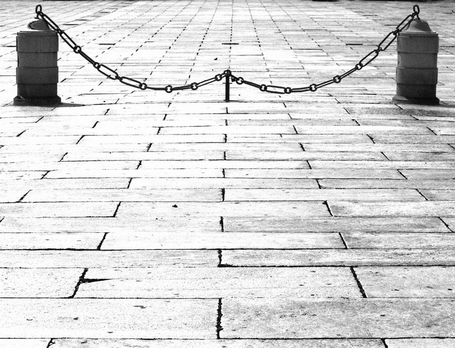 Mi spiego: si vede tranquillamente, senza troppi patemi, che la foto vive e respira grazie all'incredibile gioco di linee e di zone scure date dalle fughe delle pietre sul lastricato.. ma se deve, come deve essere, la prospettiva centrale la protagonista della scena, insieme alla simmetria evidente degli elementi, perché non portare alla verticale più assoluta la linea centrale della scena?