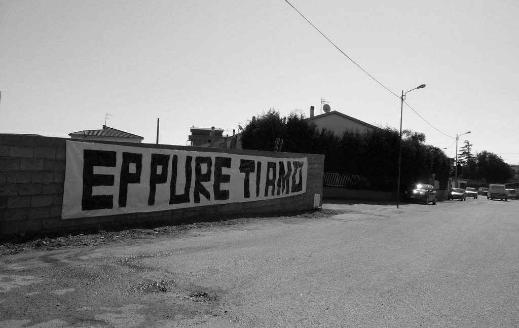 Se non tolgono lo striscione, proverei un'inquadratura più frontale e un accostamento con qualcuno/qualcosa che accendano lo scatto. In sostanza, quoto katia82.