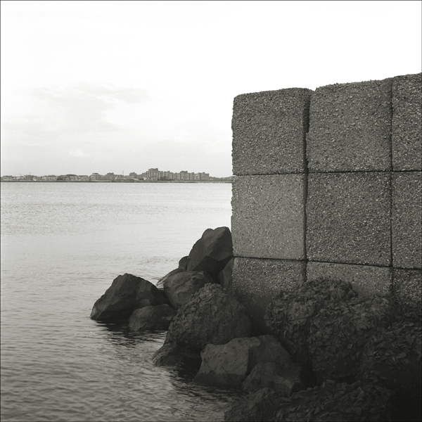 Qui la mia attenzione è stata catturata dalla bella luce in alto a sinistra, che si scontra con la zona più scura data dagli scogli e dal muretto sulla destra..