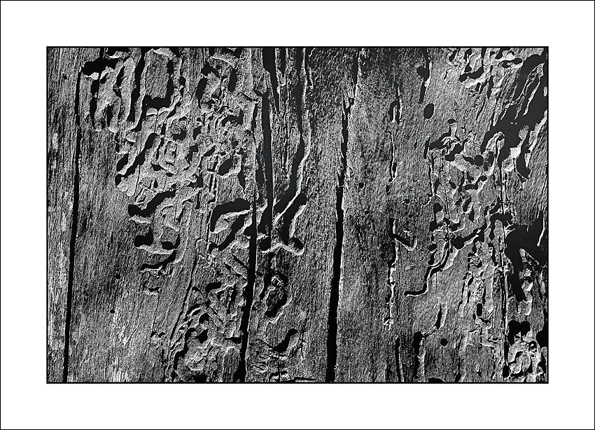 .....interessante l'effetto grafico ottenuto fotografando l'albero e rendendo soggetto una porzione limitata di quest'ultimo.... il leggero sbilanciamento dato dall'effetto pieno/vuoto delle ombre che i solchi hanno generato dona il giusto dinamismo all'immagine evitando l'eccessiva quiete facilmente raggiungibile con soggetti del genere.... Forse un pochino alto il contrasto che vede delle ombre molto chiuse, effetto sicuramente di una forte luce radente presente al momento dello scatto...