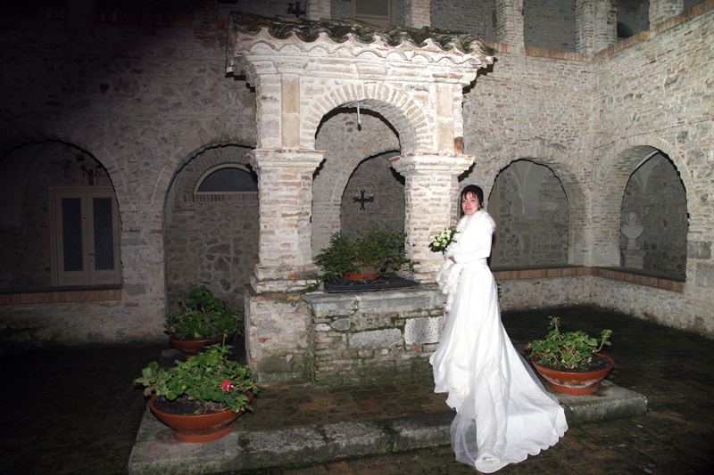 solamente l'arco del pozzo (taglio verticale molto + stretto) utlizzando una luce spot artficiale forte alle spalle della sposa che avrei posto proprio al centro dell'arco, bilanciando poi il viso con due spot + morbidi a dx e sx al fine di creare la maggior suggestione possibile di luci e ombre