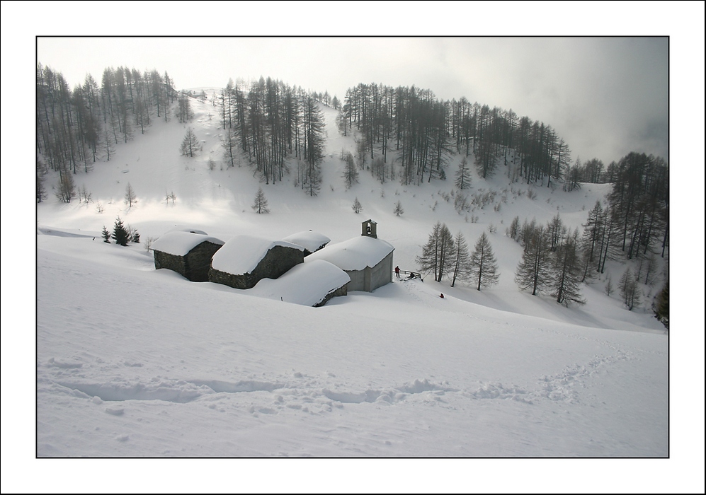 ....molto piacevole la realizzazione che vede i suoi punti di forza nella presenza tanto delle costruzioni e la sua compattezza contrapposta all'esilità e delicatezza dei tronchi in secondo piano e poi della resa del bianco della neve, davvero fedele.