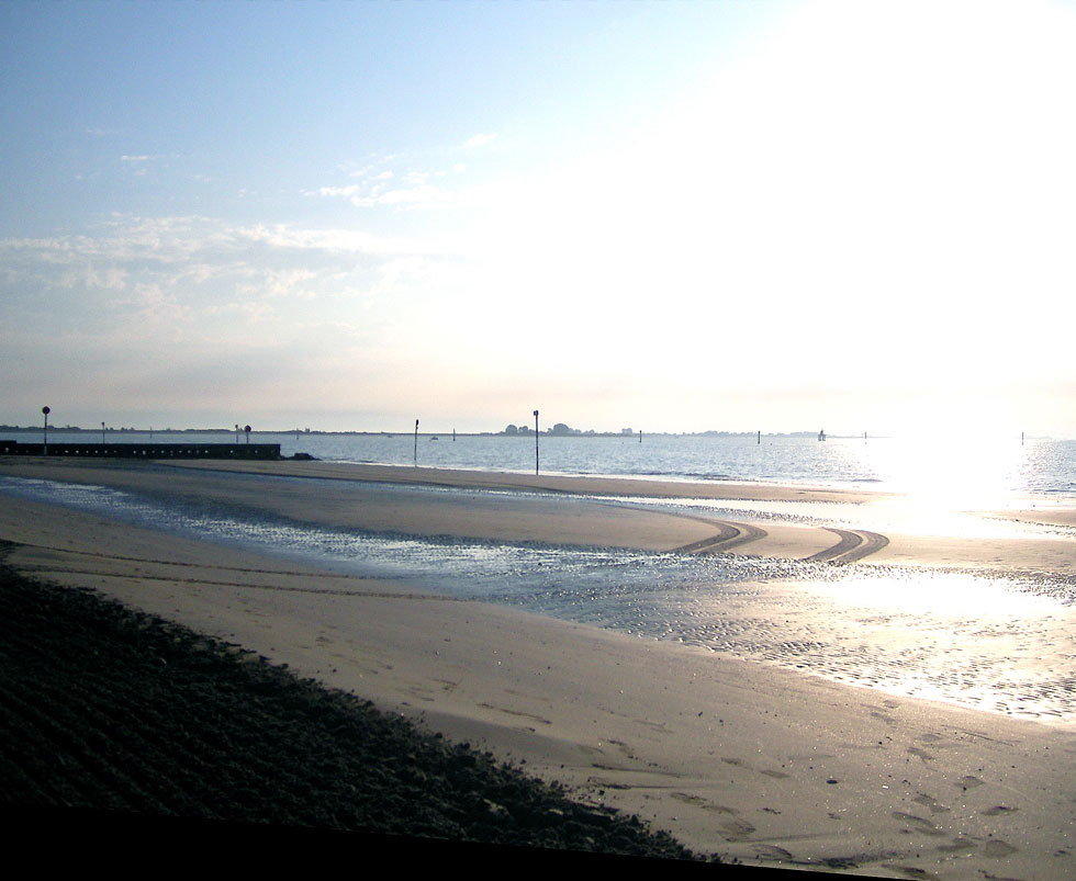 060209 Ore 7 La spiaggia è deserta...Tracce delle ruote del camion che pulisce la sabbia. Il mare continua da sempre le sue