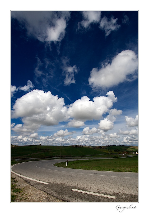 Il cielo è decisamente accattivante e la strada, che accompagna lo sguardo proprio verso le nuvole è funzionale alla riuscita dell'immagine.