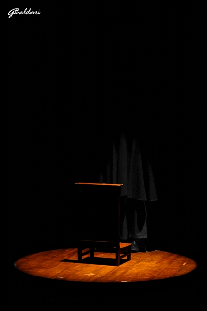 La terza foto è quella che preferisco, sia come composizione che per la luce che disegna le spalle dell'attore, sei stato molto abile nella scelta del diaframma, tanto che gli oggetti sullo scrittoio sbucano fuori dallo schermo senza risentire della luce diretta.