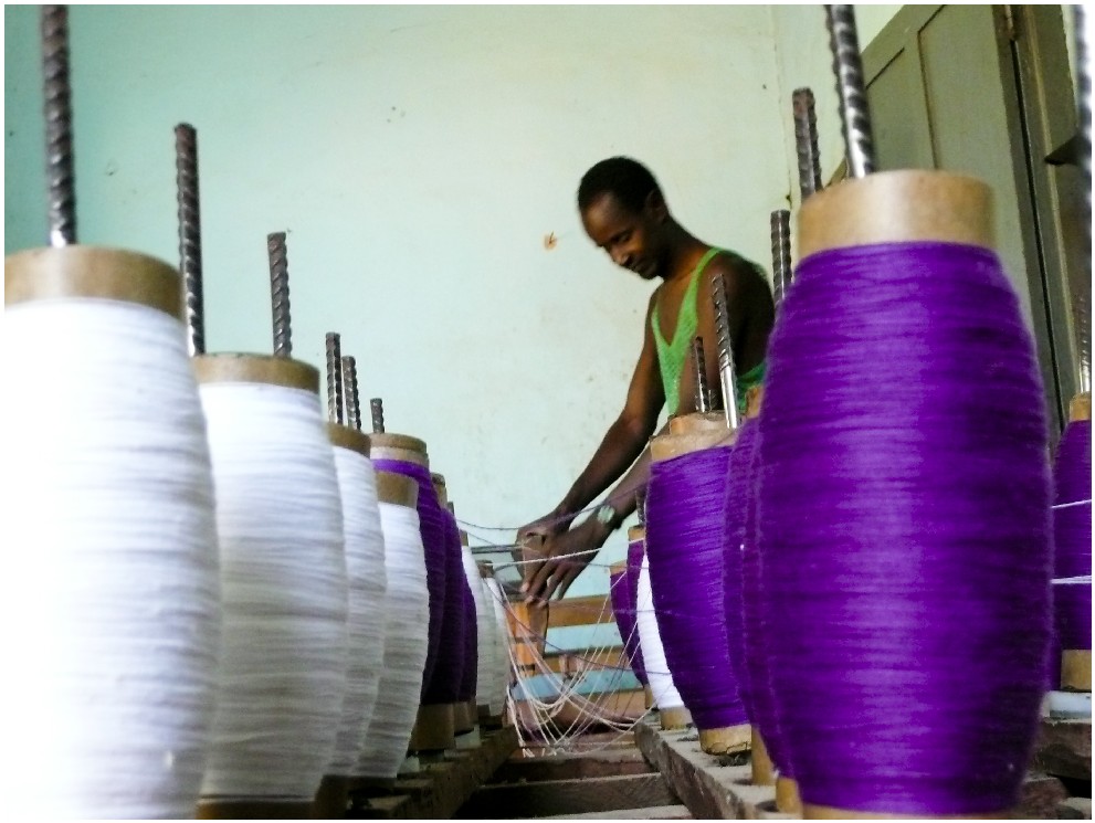 Molto ben fatta l'inquadratura, anche il mosso in secondo piano completa la vivacità dell'immagine: davanti i colori e dietro l'uomo che lavora.