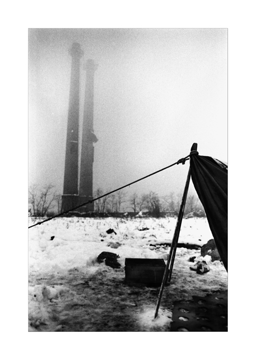 Ex italcementi in distruzione, resteranno solo le torri. Ai piedi ci viveva una famiglia Rom scappata perchè la tenda è crollata sotto il peso della neve.