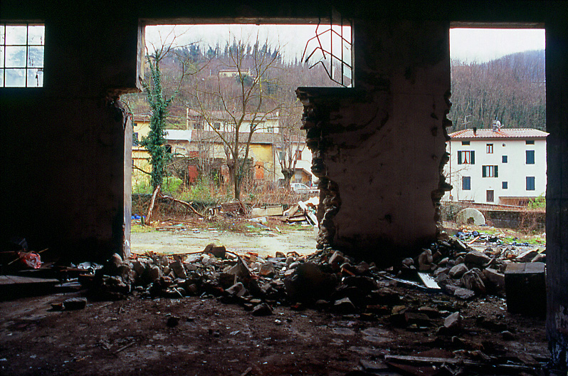 Questo scatto, come chiaramente spieghi che tranne l'ottima gestione delle luci non ha nulla di "spettacolare" ha il pregio di contestualizzare la narrazione. Se le precedenti immagini introducevano ad un percorso, questa ti cala nell'ambiente e sono proprio la ricchezza dei dettagli ed i tanti punti dove l'attenzione rimbalza che fanno di questa immagine una foto indispensabile. Collocano il degrado proprio della struttura industriale nel territorio ne affermano il passato di luogo industrioso.