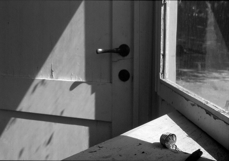 Mi piace molto questo intersecarsi di linee, angoli, ombre e spiragli di luce. Una porta chiusa ma la possibilità di fruire dell'ambiente esterno e quel resto di lampadina a testimonianza, come tu hai scritto, di un abbandono recente. Molto valido il lavoro che stai svolgendo.