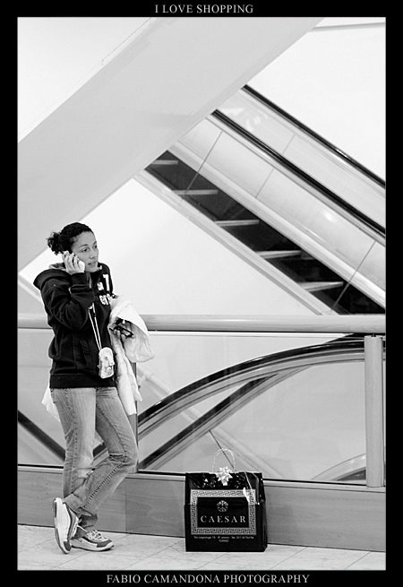 Mi piace molto questa immagine. Ottimo il taglio che valorizza le geometrie delle scale mobili, eccellente il b/n.