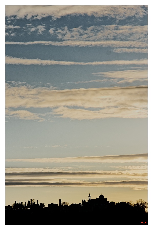 la silhouette del paesino forma il piede della foto, ma personalmente la sposterei da paesaggio, ha più un valore artistico che descrittivo del luogo, gradevoli le sfumature di colore.
