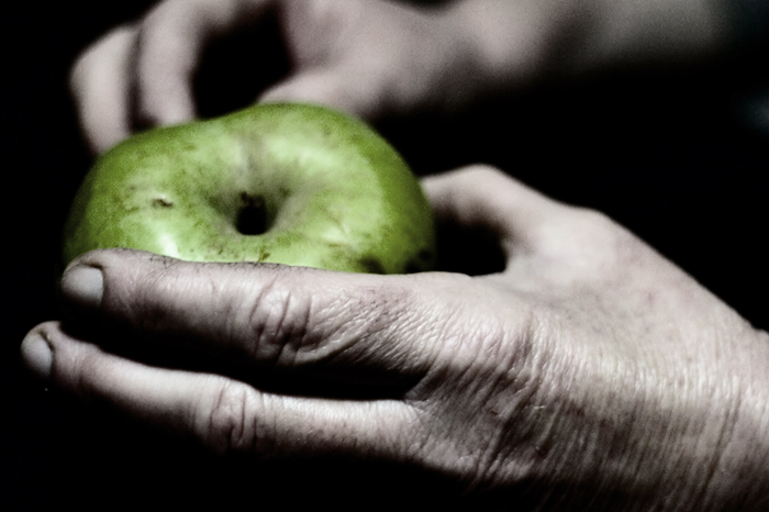 Hai selezionato la mela e desaturato il resto? Prova a mettere i dati di scatto per la prossima volta per far capire le tue intenzioni. Qui la mela non è fuoco e solo la base dell'indice risulta leggibile.
