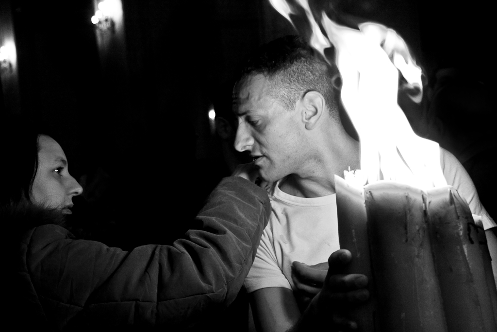 Peccato per il leggero mosso dell'uomo e per l'orecchio che spunta al centro (si potrebbe clonare via) per il resto è uno scatto interessante e molto intenso.