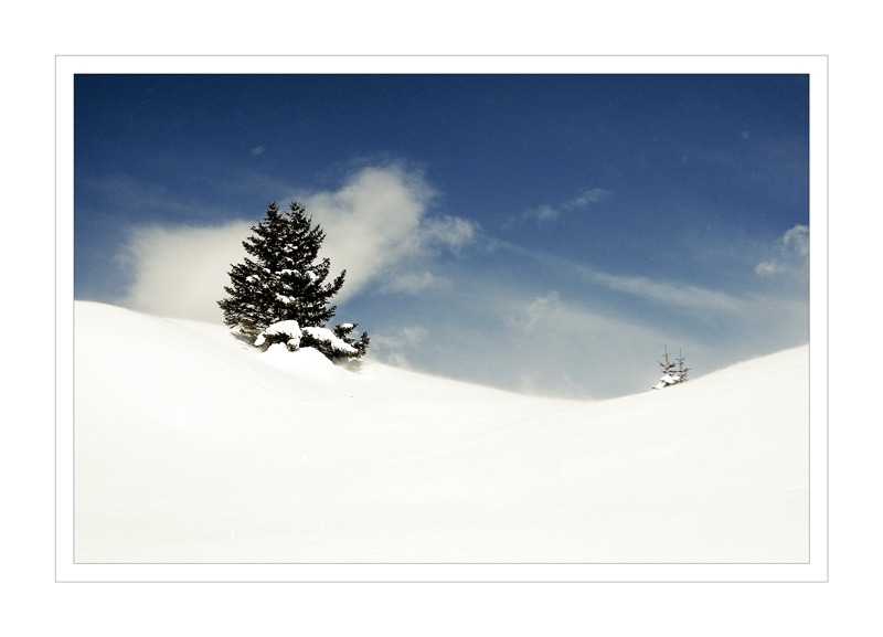 Minuscola , spazzata dal vento e come avvolta di candida e sottile polvere di neve.