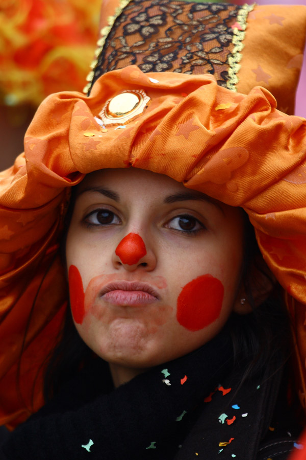 Ed è proprio l'ambiente, il contesto che nella tua foto viene a mancare. Sicuramente si può pensare al carnevale, alla gente in maschera, ai carri, alla festa, in contrasto con l'espressione un pò annoiata della ragazza, ma nella foto dove sono tutte queste cose? Se gran parte del fotogramma è occupato da un volto, io la prima cosa a cui penso è ad un ritratto; che è truccato per il carnevale, ma pur sempre un ritratto.
