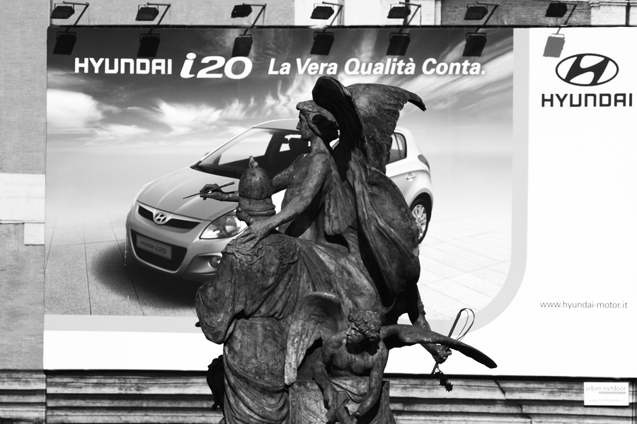 Mi immagino te Lilian che sali sull'Altare della Patria con la reflex e il biancone montato all'occorrenza per schiacciare i piani prospettici e regalarci questo scatto originale e ben fatto. Hai avuto un idea brillante e l'hai saputa realizzare. Penso proprio che questa prospettiva e questa soluzione siano veramente uniche.