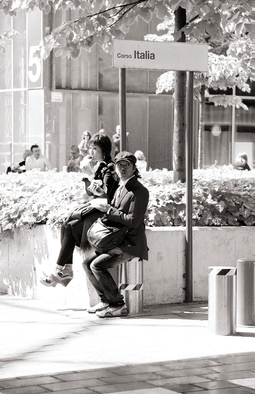 | Buona l'associazione tra i due visi "stranieri" e ed il cartello. Mi piacciono anche le espressioni colte.