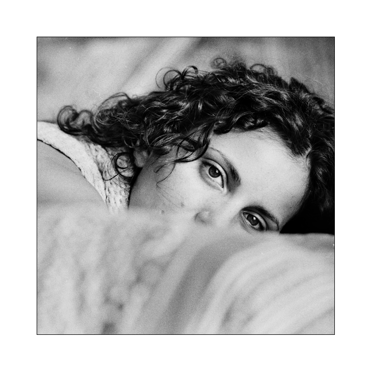 lo sfocato in primo piano è perfetto, dà un senso di avvolgimento, e lascia contestualizzare la foto. Potrebbe essere un piumone di un letto, rendendo la scena molto più intima, per fare un esempio, giustificando anche la rilassatezza del soggetto.