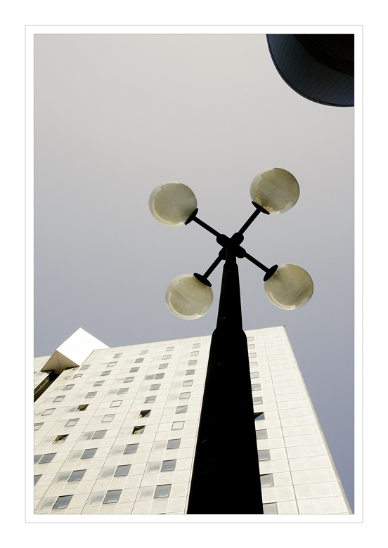 Chissà quanto hai girato intorno a questo lampione per cercare di trovare questo parallelismo assoluto tra palo e fili delle finestre sul palazzo in fondo, per conservarlo e sfruttarlo a tuo favore, per dare a quell'altro elemento in alto a destra proprio quella posizione, quasi un punto fermo che sostiene e sorregge tutta la struttura visiva, mentre a sinistra, l'elemento triangolare, aggiunge una forma nuova e diversa.. assolutamente perfetto poi lo sfruttamento dell'angolo in basso a destra, con il filo del palazzo assoluto protagonista di quella porzione del fotogramma..