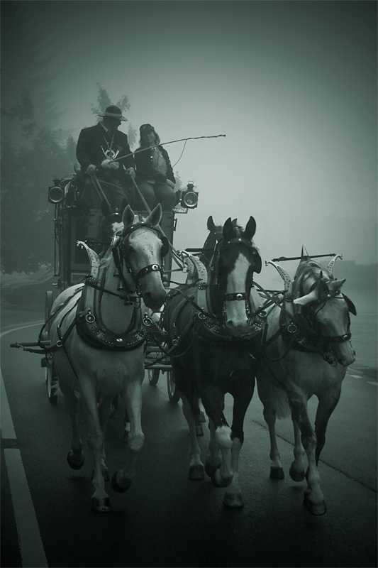 Buona questa luce che dal centro piano piano degrada verso una vignettatura leggera e progressiva. Tende a focalizzare l'attenzione sul soggetto che per me più dei cavalli sono il cocchiere e la dama.