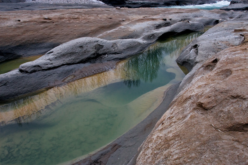 Personalmente avrei escluso il mezzo centimetro superiore per dare più centralità di interesse alla pozza centrale con i suoi bei riflessi... una buona immagine comunque.