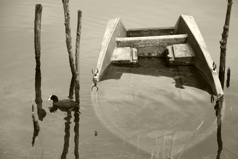 con un taglio un po' più ampio ( a prendere l'intera imbarcazione) e magari a colori per me sarebbe una foto simpaticissima soprattutto per la presenza dell'indifferente paperella....